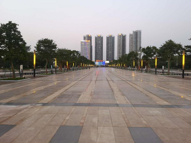 增城廣場內道路面積14700平方米,停車面積16500平方米,商用建筑面積3556平方米,建筑小品面積720平方米;種植喬木、灌木、棕櫚類、竹類等12746棵,種植地被色塊、美人蕉、時花等42741平方米、植草皮93763平方米;內設洗手間3座、休息亭6座、花架3座等設施;安裝高桿燈、低桿燈、埋地燈、泛光燈等3000多個,廣場綠地率達55%,綠化覆蓋率達68%。