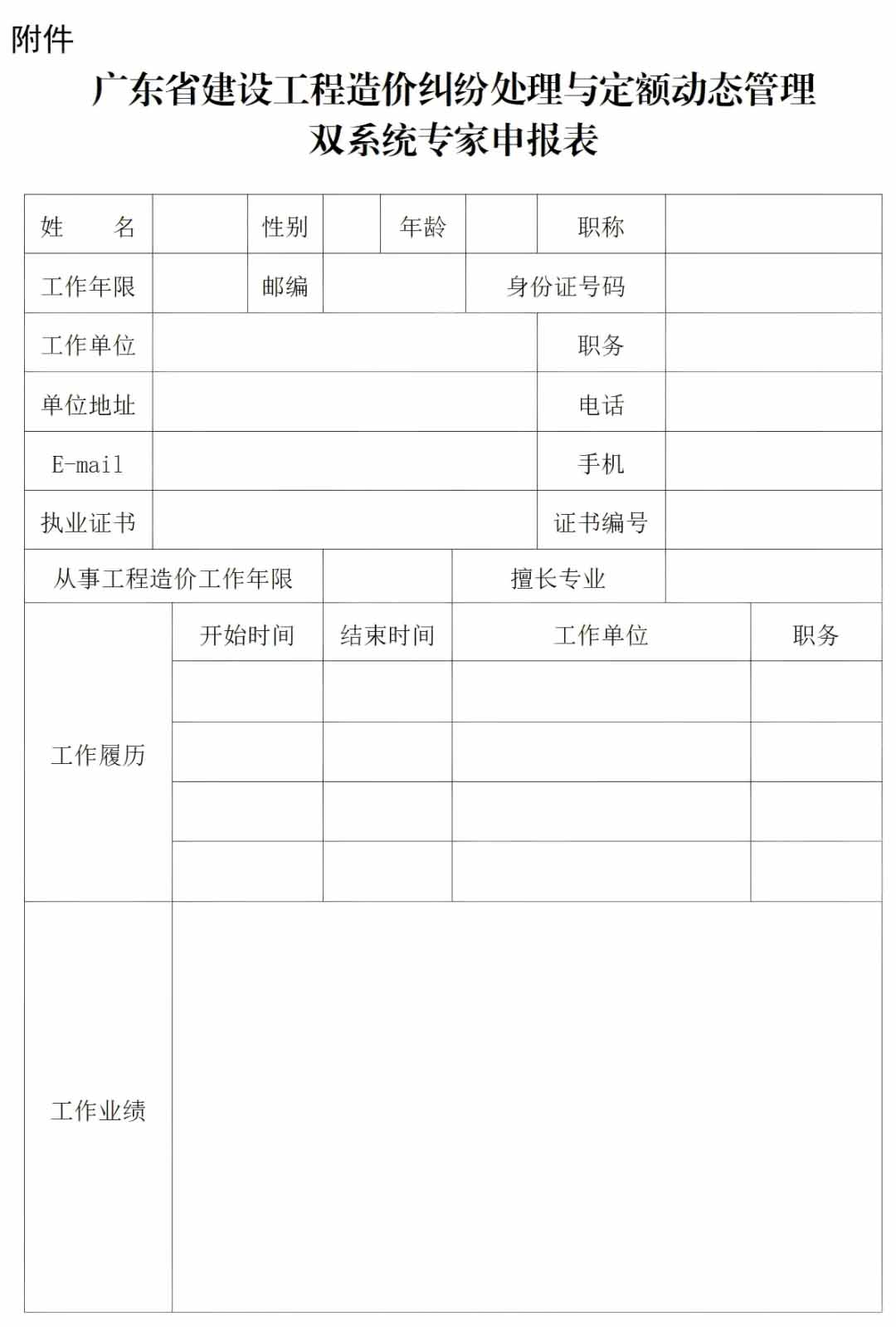 2025年度廣東省建設工程造價糾紛處理系統與廣東省建設工程定額動態管理系統(以下簡稱:雙系統)專家將于12月底聘期屆滿。為進一步提升雙系統造價服務“一網通辦” 的效率與質量,吸納建筑行業各專業領域優秀人才,打造實力更強、效率更高、服務更好的專家團隊,我中心決定調整雙系統專家庫專家。現就申報專家庫專家有關事項通知如下:(一)嚴格執行黨風廉政建設和反腐敗有關規定,自覺遵守保密相關的法律法規,對參與雙系統工作相關的資料和數據,嚴禁外泄。(二)參與計價糾紛處理。分析審核糾紛處理爭議資料,出具專業意見,參加糾紛處理會議討論。(三)參與計價依據技術應用解釋,參加計價依據研討會議。(一)遵守國家法律法規,具有良好的政治素質、職業道德,作風正派、學術嚴謹;(二)具備一級造價工程師執業資格,從事造價管理相關工作10年以上,具有一定的工程咨詢專業理論知識與豐富的實踐工作經驗,熟悉建設工程領域相關法律法規、技術規范和標準,熟悉廣東省計價依據;(三)身體健康,熟練運用信息化辦公系統,具有充足的時間從事雙系統工作,年齡不超過70歲;(四)自愿為行業發展提供服務,接受考核,遵守工作要求,按時保質提交成果文件。(一)在高等院校、科研院所、企事業單位等從事工作的人員,在征得本單位同意的情況下,可按要求申報。(二)退休人員自愿申請成為雙系統的專家,可以個人名義申請入庫。(一)提交申請。符合申請條件的專家需提交《申報表》(見附件),同時提供執業資格證書等掃描件。(二)遴選確定專家。我中心對申報專家材料進行綜合匯總,開展資格預審、面試遴選,優選確定雙系統專家庫專家。(三)公布專家名單。組織培訓,簽訂廉政承諾書和保密責任書。(四)頒發專家聘任證書。專家庫專家實行聘任制,聘期1年。聘期屆滿后,考核合格的,由我中心予以續聘。請各有關單位工作人員,積極申報入庫。《申報表》需經本人簽名,有單位的需加蓋單位公章。請將《申報表》及相關證書掃描件于2025年11月02日前發至我中心電子郵箱:zjt_biaodingzhan@gd.gov.cn。(聯系人:方雪慧、吳增衡,聯系電話:020-87258950)