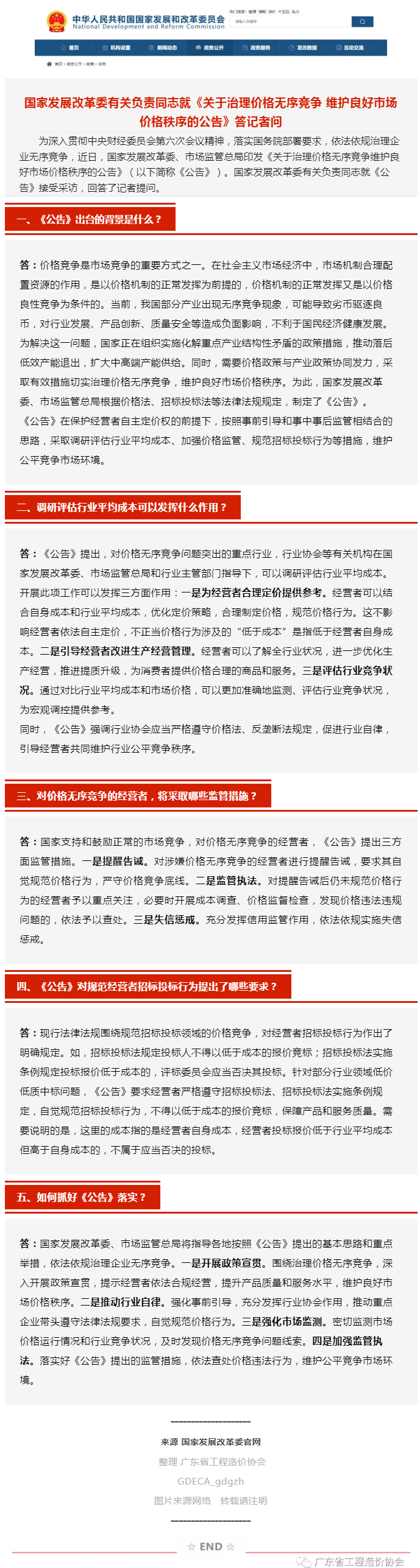 國家發展改革委有關負責同志就《關于治理價格無序競爭 維護良好市場價格秩序的公告》答記者問