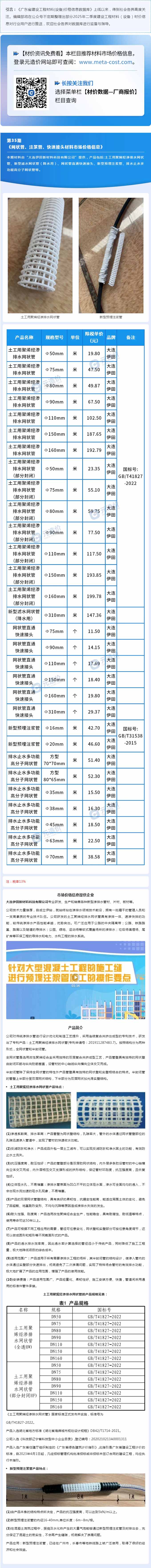 廣東省建設(shè)工程材料(設(shè)備)參考信息第35期——網(wǎng)狀管、注漿管、快速接頭材料市場(chǎng)價(jià)格信息
