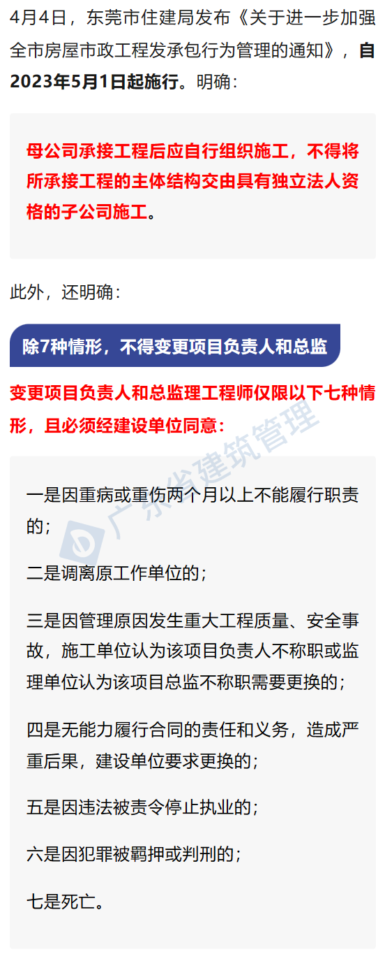 6.強(qiáng)化限額以下工程管理。建設(shè)單位應(yīng)加強(qiáng)工程投資額在100萬元以下或建筑面積在500平方米以下的房建工程、建筑室內(nèi)外裝飾裝修工程和房屋修繕加固工程(不含生產(chǎn)設(shè)備、家居電器及廣告標(biāo)識(shí)安裝、維修、更換等非建筑工程作業(yè))、污水處理工程、城市軌道交通工程、綜合管廊工程(不含上述市政工程的日常養(yǎng)護(hù)修繕)等限額以下小型工程的發(fā)承包管理,按照《東莞市進(jìn)一步加強(qiáng)限額以下房屋建筑和市政工程安全隱患整治工作方案》(東建質(zhì)安〔2022〕11號(hào))強(qiáng)化管理。