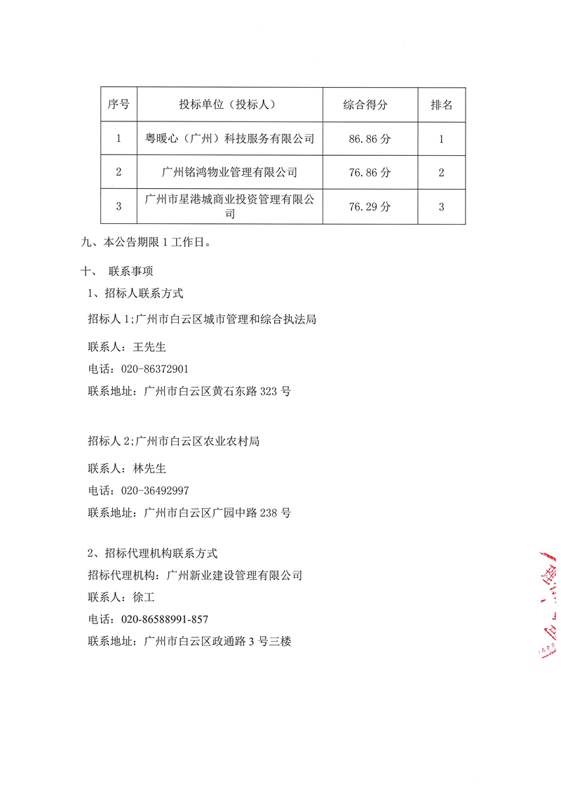 廣州市白云區百座美麗公廁建設管理項目中標結果公告
