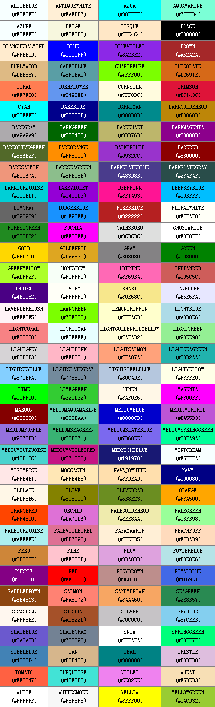 >> UBB 標簽中所支持的顏色表
